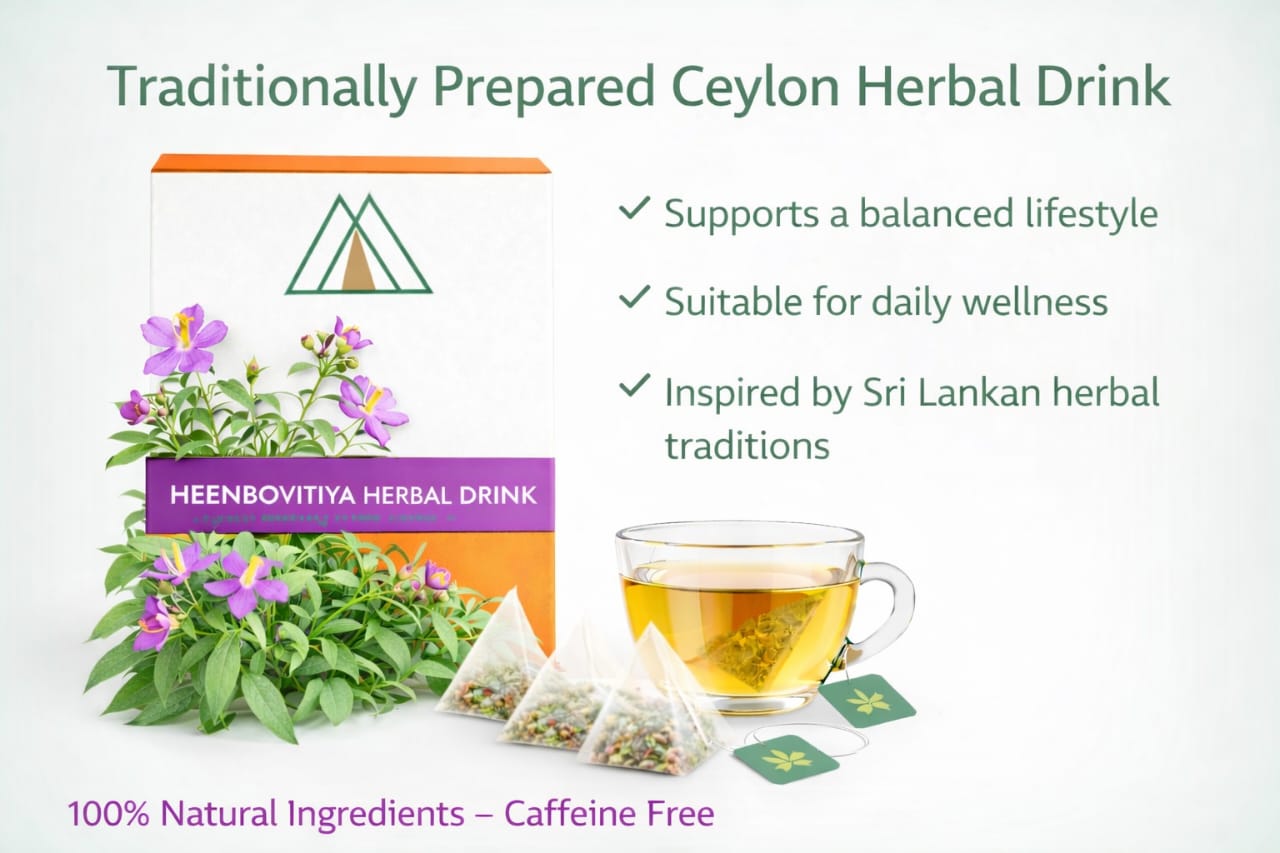 Heenbovitiya Herbal Tea is a traditionally prepared Ceylon herbal infusion made from carefully selected natural ingredients. Crafted in Sri Lanka using time-honoured methods, this caffeine-free herbal tea is ideal for daily wellness and a balanced lifestyle.