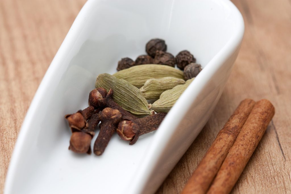 cinnamon, cardamom, cloves, ginger, and pepper.